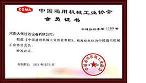 獲得中國通用機械工業協會頒發的“中國通用機械工業協會會員證書”。
